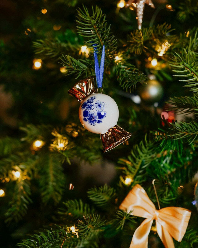 Hang een kerstboompje van keramiek in je echte kerstboom! Dit leuke kerstornament is uitgevoerd in 3D met vier zijdes die uitsteken aan alle kanten. De kerstboom hangt aan een lintje en de zijkanten van de takken zijn versierd met Delfts blauwe bloemen. Een leuk aandenken aan je reis naar Nederland, een cadeautje voor familie of vrienden in het buitenland of gewoon een prachtig kerstornament voor in de Nederlandse kerstboom! Combineer het kerstornament met onze andere Delfts blauwe ornamenten en kerstballen voor een rijk versierde kerstboom waar je uren naar blijft turen.