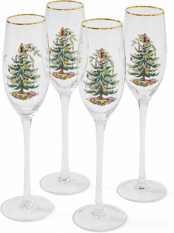 Spode Christmas Tree Gold 8.5oz Champagne Flutes (Set of 4)